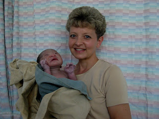 strong contractions. Knowing that she could deliver fairly quickly we admitted her. About 25 minutes later I received a second call stating that this lady was about to deliver! I grabbed my camera and bag and headed to the labor ward. I got there just in time to see a new baby girl enter the world! The miracle of life never ceases to amaze me no matter how many times I see it!! This precious little girl will join two older brothers. She weighs 3.525 kg (7lb 12oz). Below, Dr. Bill is presenting Anna and her new baby a special certificate stating that she is the first baby to be born at the new Kudjip Nazarene Hospital.